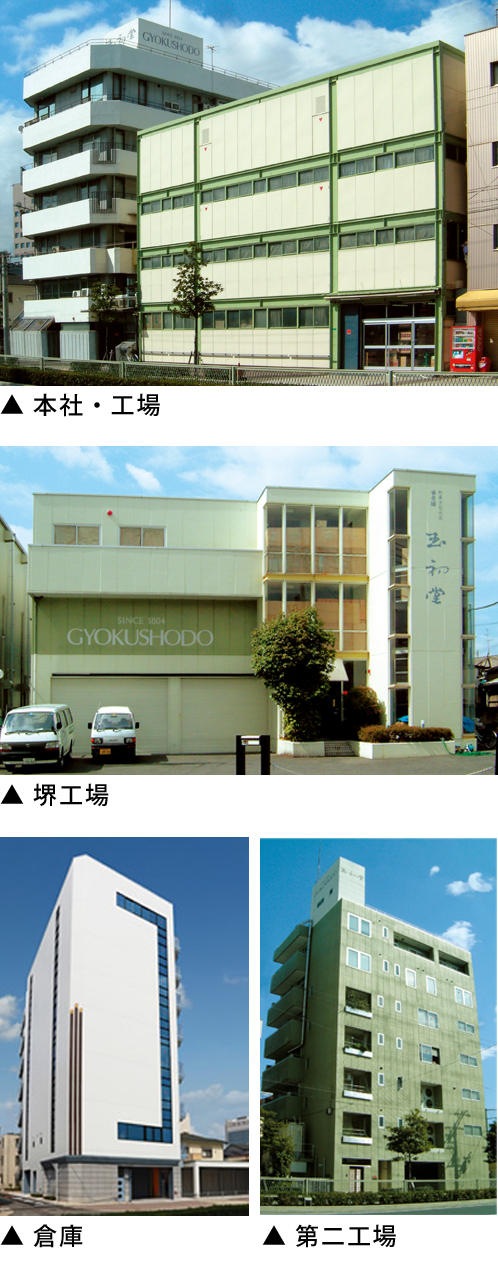 事業所 | 本社・工場 【営業部】 【総務部】 第二工場 堺工場 ICHIKOICHIE QNOWA ※QNOWAでは玉初堂仏事用製品の扱いはございません。 協力工場 近畿一円6社 |